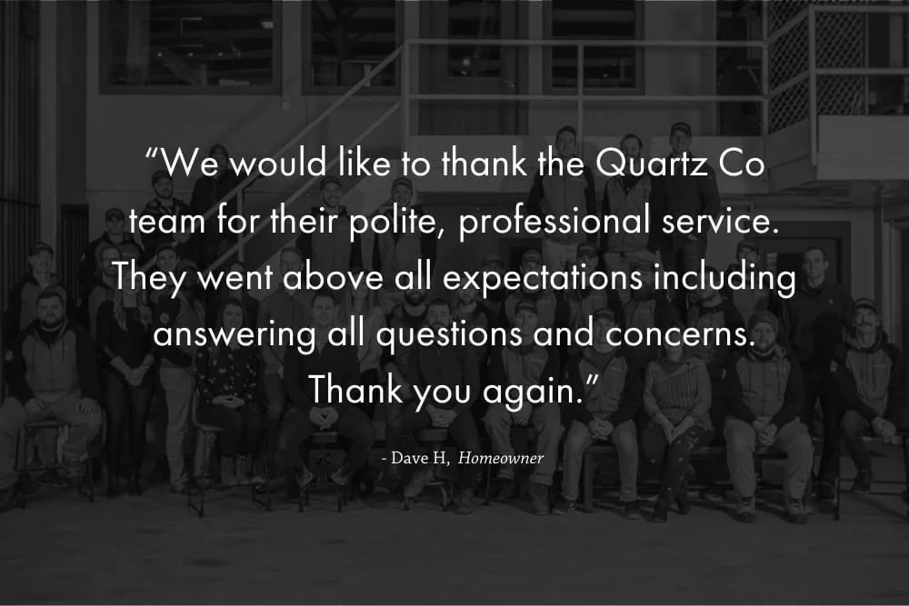 At Quartz Co there’s no need to wait 8-12 weeks for quartz kitchen countertops. Our streamlined process allows us to produce high quality products with industry leading efficiency and consistency. Customers know to expect accurate measurements, flawless finishes, and a commitment to staying on site until the job is perfect.