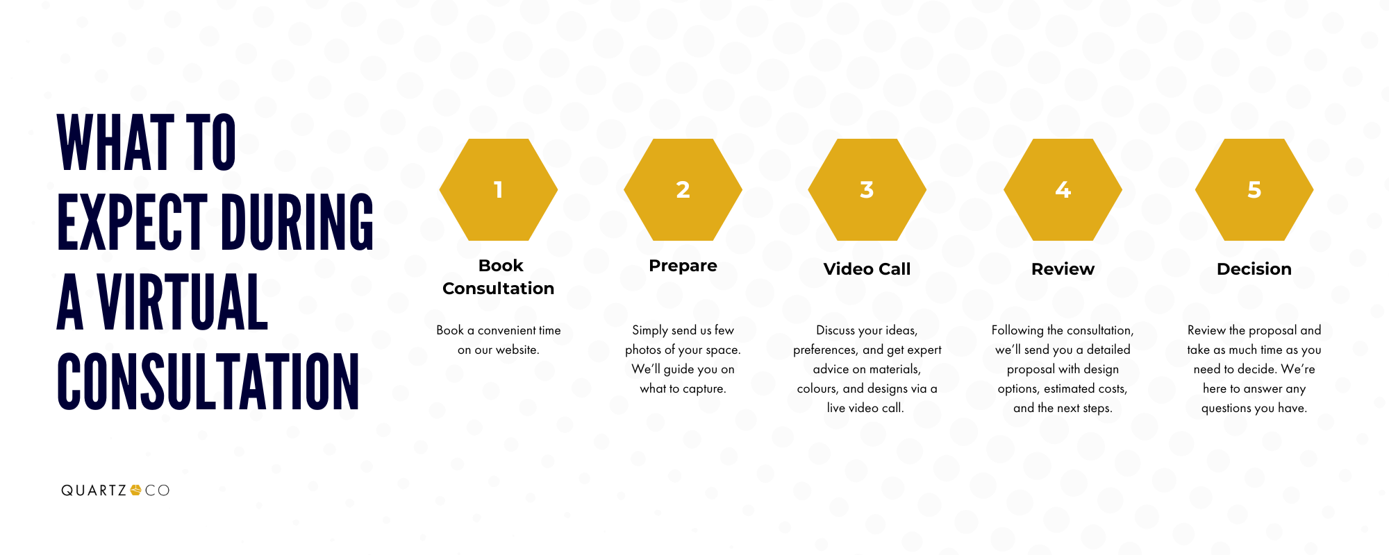 Join us for a live video consultation where we’ll walk you through ideas, discussing your preferences, and offer expert advice on materials, colours, and designs.